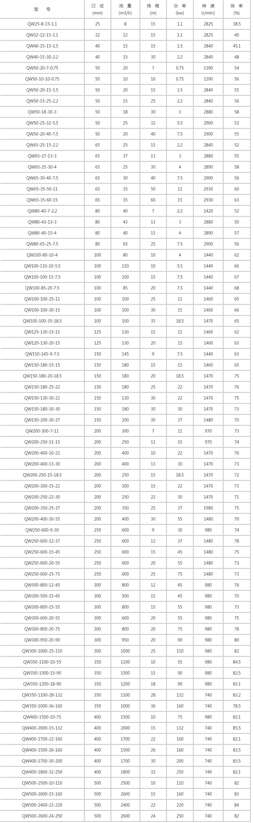 WQ(QW)系列潛水(shuǐ)式無堵塞排污(wū)泵在引進國外(wai)先進技術的基(jī)礎上⭐,在經我廠(chang)科研人員的共(gong)同努力下,同時(shi)廣泛征求國内(nèi)水泵專家的意(yi)見,并經過多次(cì)改良而研制成(cheng)功的🤩,經測試各(gè)項性能指标🈲次(ci)達到國外㊙️同類(lei)産品的先進水(shui)平。潛水排污泵(bèng)流量:7∽2400m3/h,揚程:7∽60m等,潛(qián)水排污泵根據(jù)使用介質💃,安裝(zhuang)方式不同設計(jì)制造♌成同性能(neng)參數的WL、YW、GW系列産(chan)品。