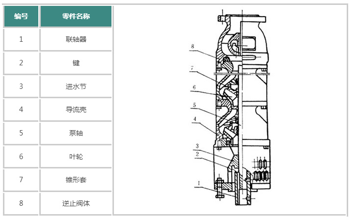 1、125QJ井用(yong)潛水電泵(bèng)為離心式(shi)或混流式(shì);采用水潤(rùn)滑軸承;與(yu)電機😄的🔆聯(lián)接采用聯(lian)軸器剛性(xìng)聯接。泵葉(ye)輪在電機(ji)帶動下旋(xuán)轉産生離(li)心力,使液(ye)體能量增(zēng)加經泵殼(ke)的導流作(zuo)用進行提(ti)水。在水泵(beng)上端設有(you)逆止閥體(tǐ),防止🚶♀️電泵(beng)停機時,因(yīn)揚水管中(zhōng)倒流的水(shui)損壞工作(zuo)部件。閥上(shang)有洩水孔(kǒng),可将管路(lù)中的水緩(huǎn)緩放掉,防(fáng)止冬天凍(dòng)裂管路。 (注(zhù):低揚程潛(qian)水泵不設(she)逆止❗閥體(tǐ))