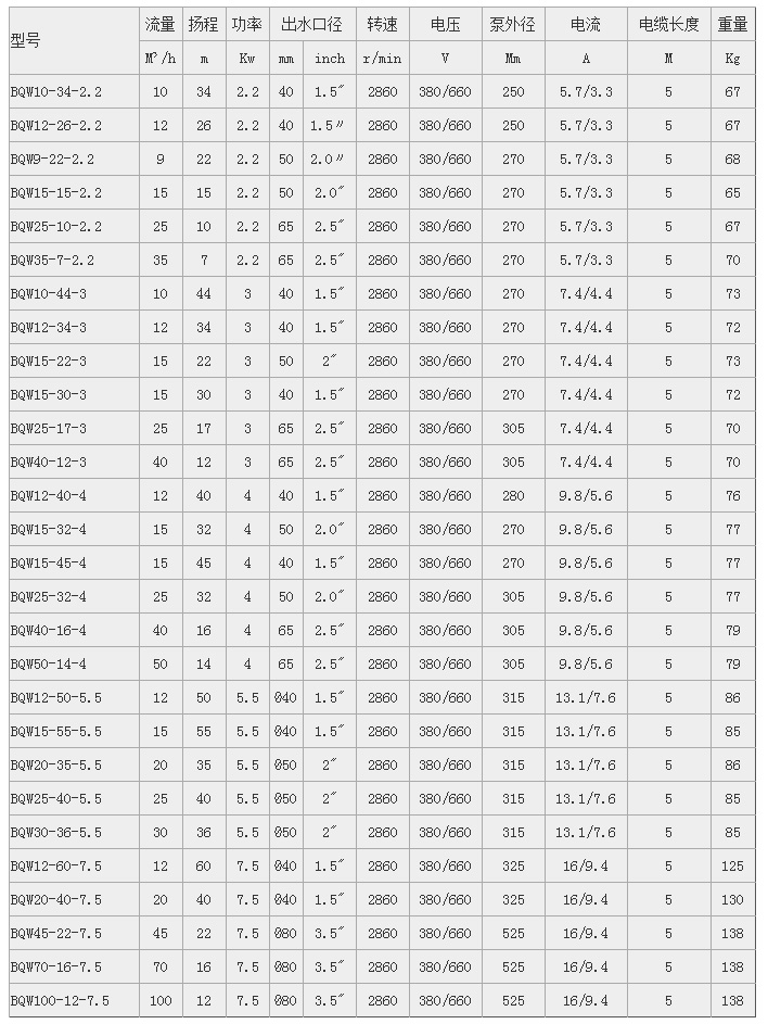 電機(ji)使用: 電機為(wéi)全封閉、礦用(yong)隔爆型幹式(shi)三相潛污水(shui)電泵用電動(dong)機