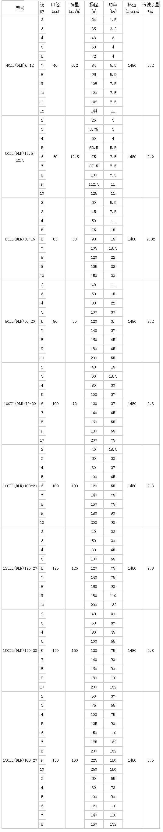 技術參數(shù): DL(DLR)型立式離心(xīn)多級泵