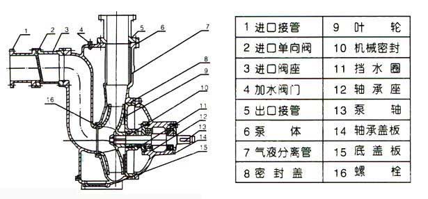 ZW型自吸(xī)式無堵塞排污(wū)泵結構圖: