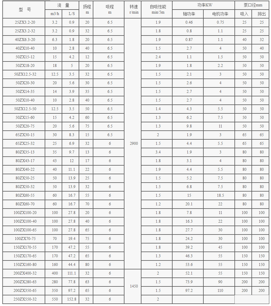 ZX系列(lie)自吸泵性能參數(shu):