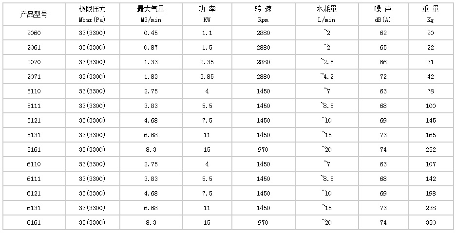 2BV型水環式(shì)真空泵的主(zhǔ)要技術數據(jù):