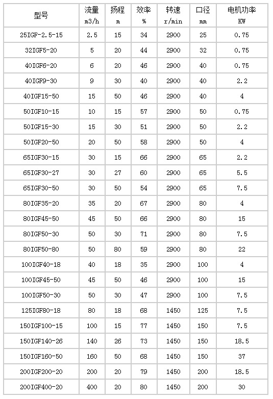 性能參(cān)數: IGF型襯氟管(guan)道泵