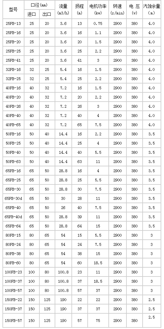 三(san)、技術參數(shu): FB、AFB型耐腐蝕(shi)離心化工(gong)泵