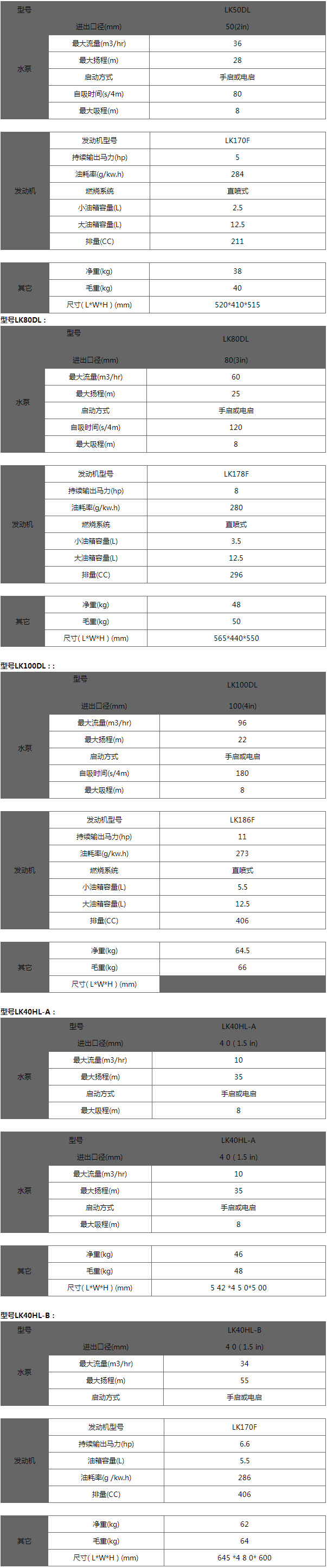 單缸風冷(lěng)柴油自吸(xī)水泵技術(shu)參數: 型号(hao)LK50DL: